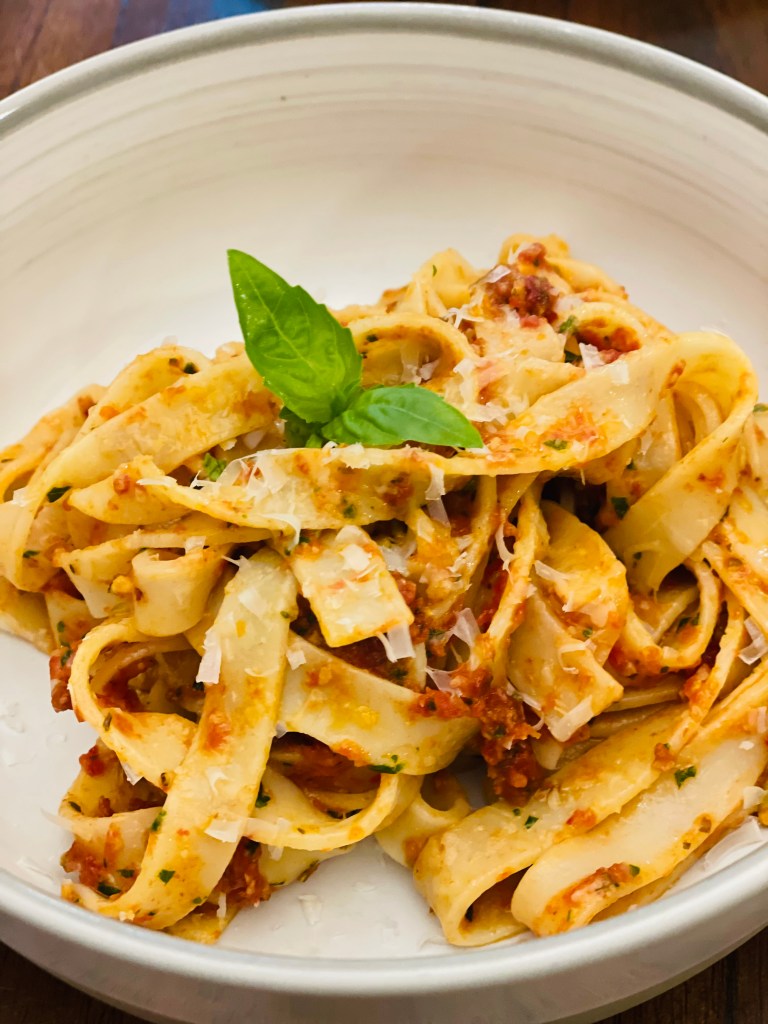Who said pesto had to be green?! A unique twist on a classic, this pesto is filled with bright flavors and textures and can be used in so many other dishes. This pasta dish comes together in less than 20 minutes and will soon be one of your favorites!